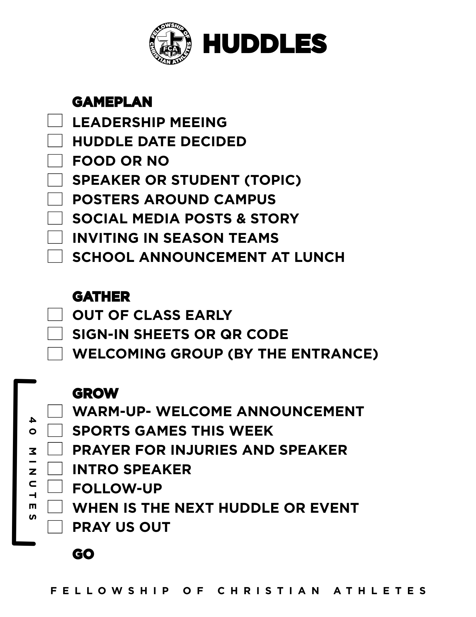 EVERY GREAT FCA HUDDLE HAS A PLAN!